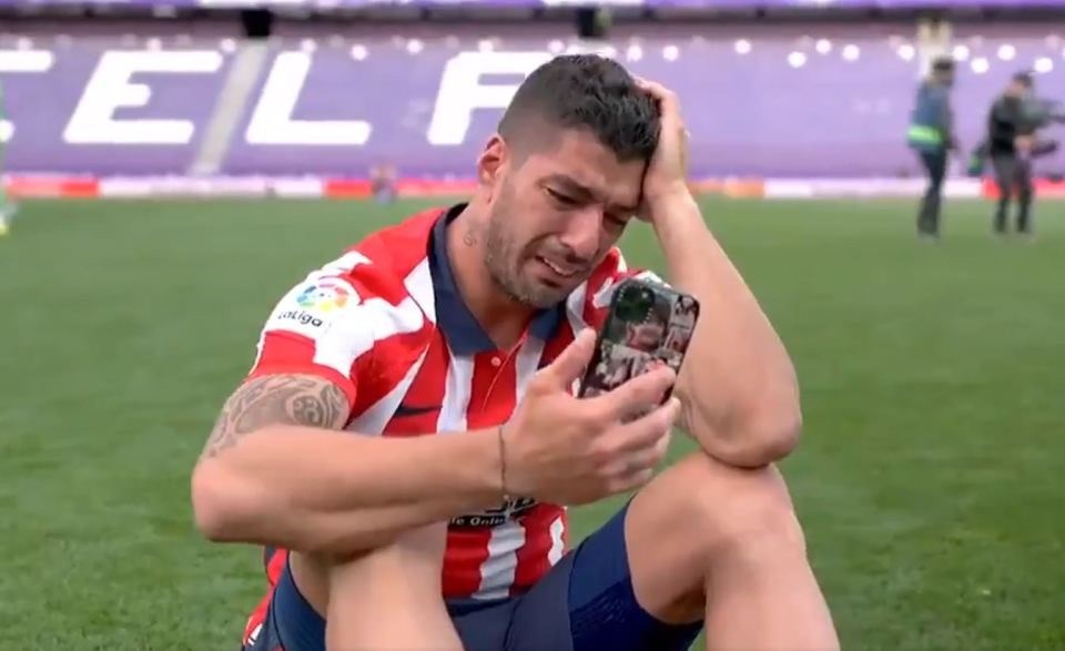 Luis Suarez đã rơi nước mắt sau khi bị ngã trong trận đấu cuối cùng trên sân nhà cho Atletico Madrid.